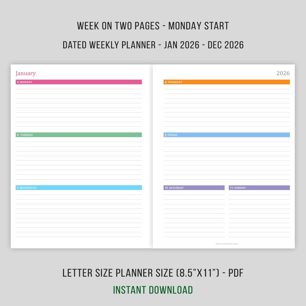 Download free printable 2026 Weekly Planner - Horizontal - Monday Start . For more similar 2026 templates, browse our free printable library. Simply download and print them at home or office.