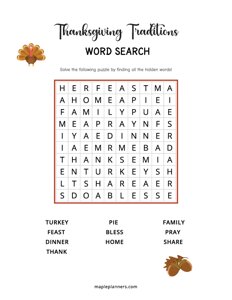 It's a fun and engaging way for children to reflect on what they’re thankful for while developing their vocabulary and problem-solving skills. Perfect for classrooms, homeschooling, or family gatherings, this word search is easy to print and enjoy.