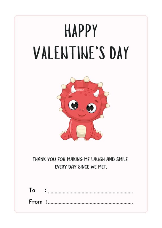 Our free Happy Valentine's Day card is a fun and adorable way to share your love. It features a cute little dinosaur and a heartfelt message for someone special.