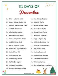 Make December special with our 31 Days of December Printable! This simple template has a fun and meaningful activity for each day of the month, perfect for enjoying the season with …